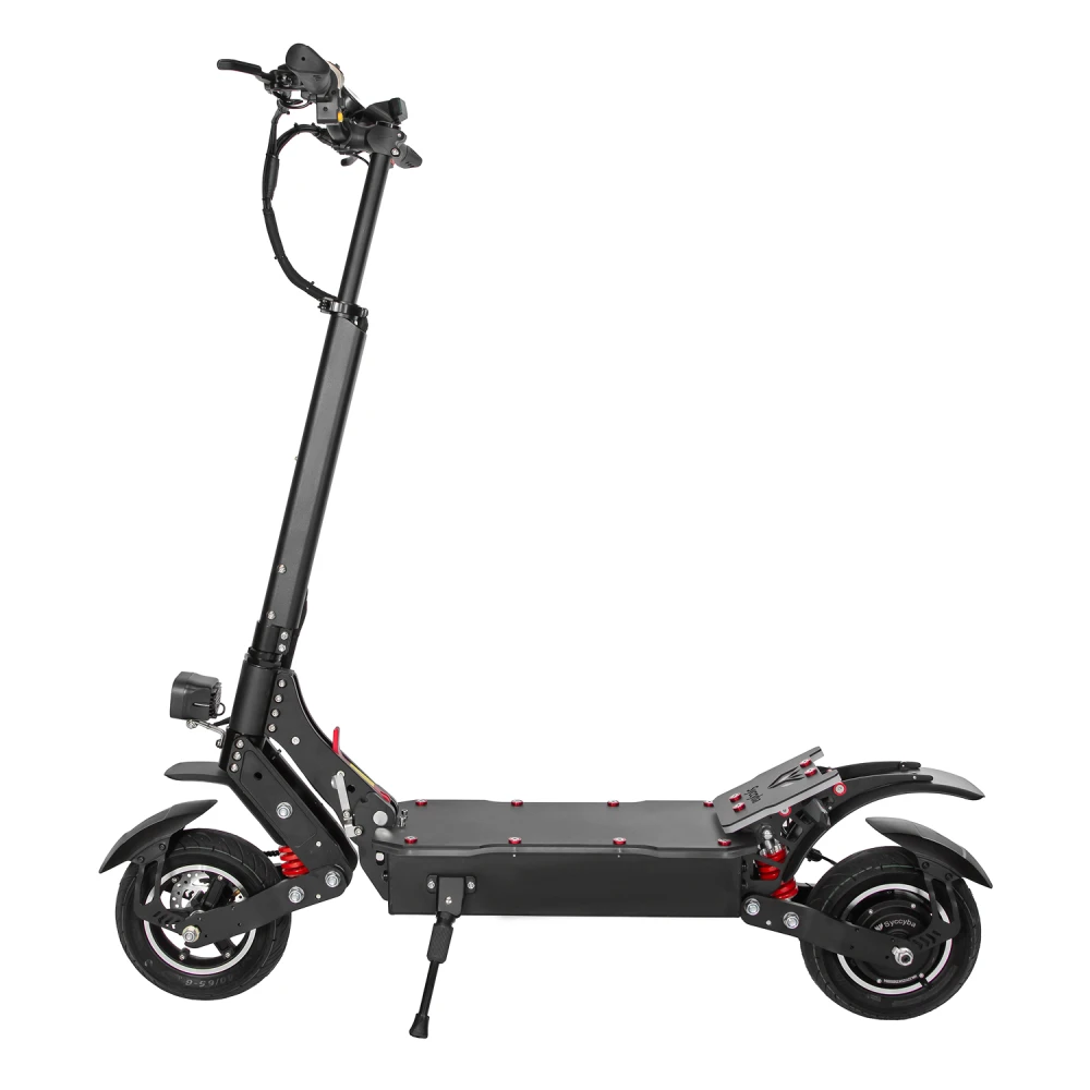 Syccyba M10 Lite обладает усиленной алюминиевой рамой, задним приводом и пневматическими колесами диаметром 10–12 дюймов, что улучшает проходимость и комфорт. Модель оснащена передними и задними гидравлическими дисковыми тормозами, обеспечивающими эффективное торможение. В сравнении с конкурентами в своей ценовой категории M10 Lite выгодно отличается сочетанием мощного двигателя и большого запаса хода. Среди недостатков можно отметить относительно высокий вес около 31-40 кг, что снижает мобильность при транспортировке.