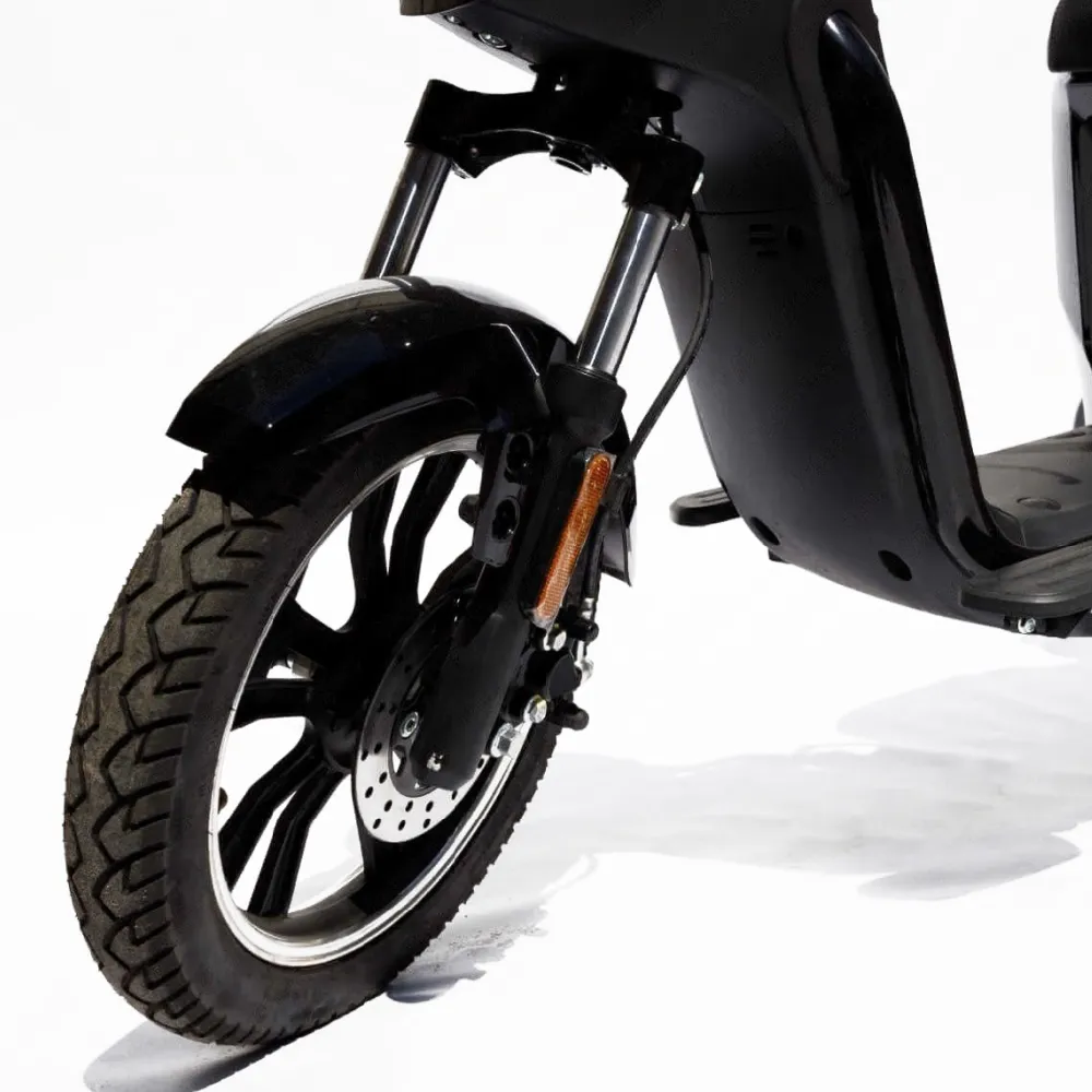 Модель оснащена необходимыми для комфорта и удобства запчастями и аксессуарами. Удобное мягкое седло снижает нагрузку на позвоночник, позволяет забыть об усталости при преодолении больших расстояний. Наличие светодиодной фары, брендовой тормозной системы, зеркал заднего вида обещает активное время провождение на свежем воздухе независимо от погодных условий и суток. Вместительная платформа для ног снижает нагрузку, увеличивает степень комфорта. 16-дюймовая колесная часть накатистая, отлично сцепляемая с поверхностью. Технические характеристики (мощность двигателя – 800 Вт), емкая АКБ (Li-Ion аккумулятор 25Ah, 48V) позволяет развить скорость до 50 км/час и преодолеть на одной подзарядке до 60 км пути.