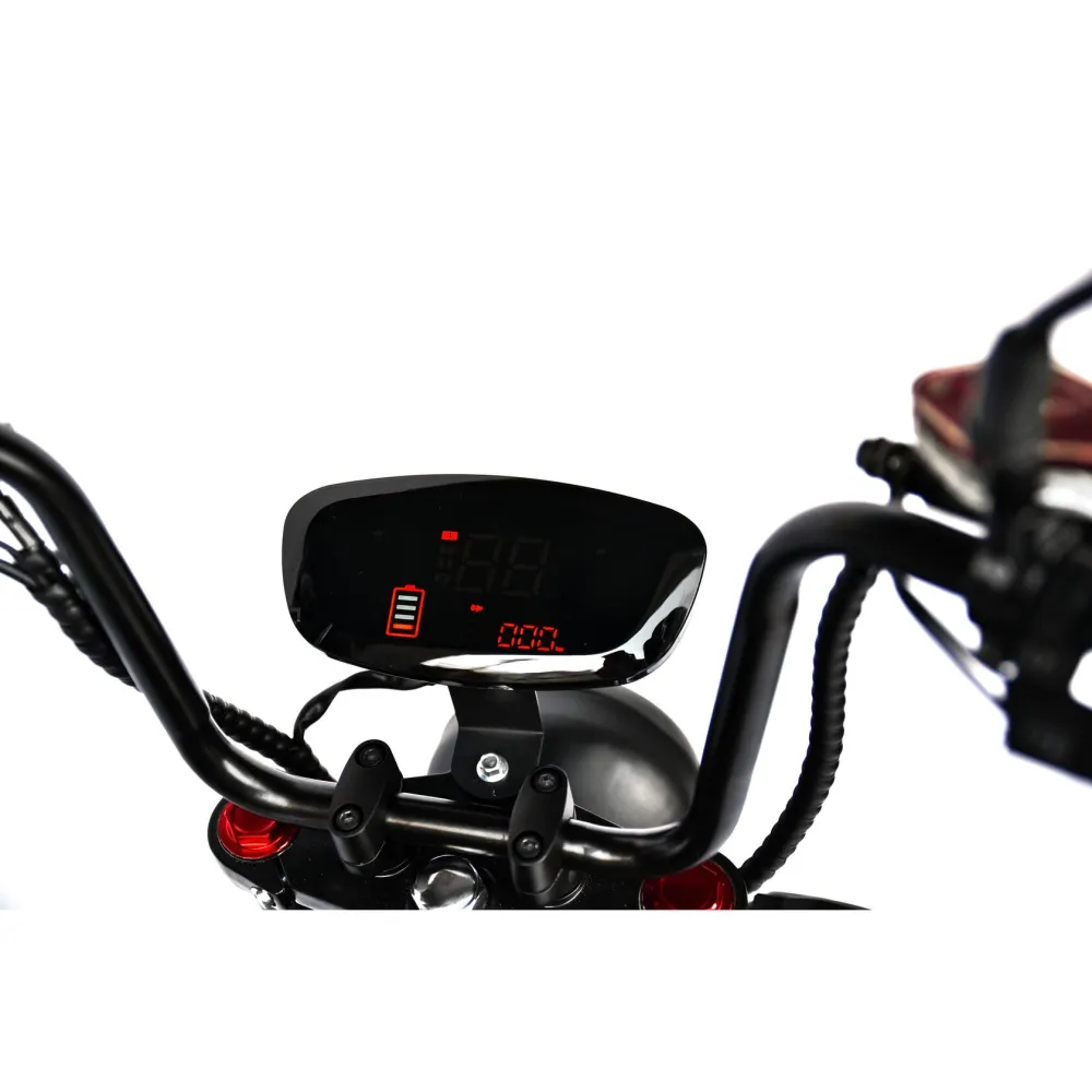 Двухместный байк оснащен яркой светодиодной фарой, задним стоп-фонарем и поворотниками. Наличие зеркал заднего вида и дисплея с параметрами вольтажа увеличивают степень безопасности тс. Из других дополнительных элементов производитель выделяет держатель для телефона, клаксон и светоотражатели. В совокупности техника комфортная и безопасная. Для заказа мощного байка сейчас предлагаем сделать телефонный звонок менеджеру интернет-магазина.