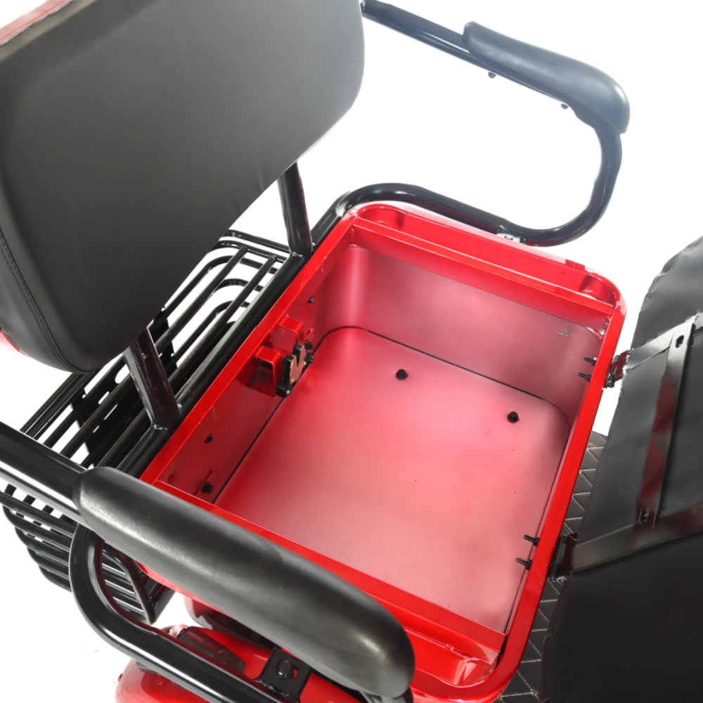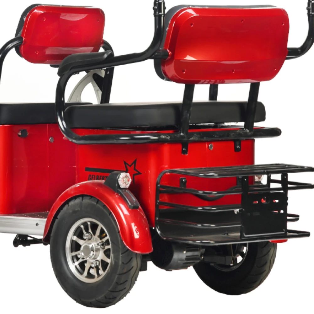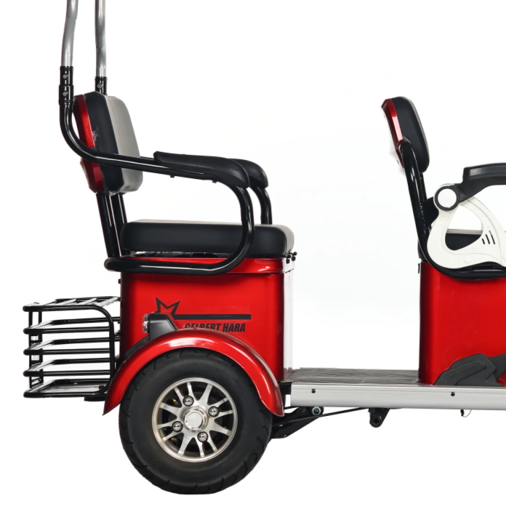 Электротрицикл Rutrike Gelbert Hara – это современное средство передвижения, разработанное брендом Gelbert для комфортных и безопасных поездок в условиях города и пригородных маршрутов. Его синий корпус привлекает внимание ярким дизайном, а продуманная конструкция гарантирует надежность и долговечность устройства.Трицикл оснащен двигателем мощностью 600 W, работающим при напряжении 48/60 V, что позволяет уверенно стартовать и поддерживать стабильное движение при максимальной скорости до 25 км/ч. Вместительный аккумулятор с ёмкостью 32 Ah обеспечивает достаточный запас энергии для продолжительных поездок, а оптимизированная система питания гарантирует надежную работу даже при переменчивых условиях.Общая масса устройства составляет 153 кг, что свидетельствует о его прочности и устойчивости, а габариты в собранном состоянии – 210×87×110 см – обеспечивают комфортное размещение водителя и пассажиров. Особое внимание уделено безопасности: традиционная барабанная тормозная система гарантирует надежное замедление в критических ситуациях, а система освещения, включающая переднюю фару, задний стоп-сигнал и поворотники, делает трицикл заметным для окружающих.Модель дополнена практичными элементами для повседневного использования – наличие багажника и корзины позволяет перевозить необходимые вещи, а крыша обеспечивает защиту от непогоды, делая поездки еще более комфортными. Электротрицикл Rutrike Gelbert Hara – это универсальное решение для тех, кто ценит сочетание современной технологии, надежной конструкции и удобства в повседневном движении.