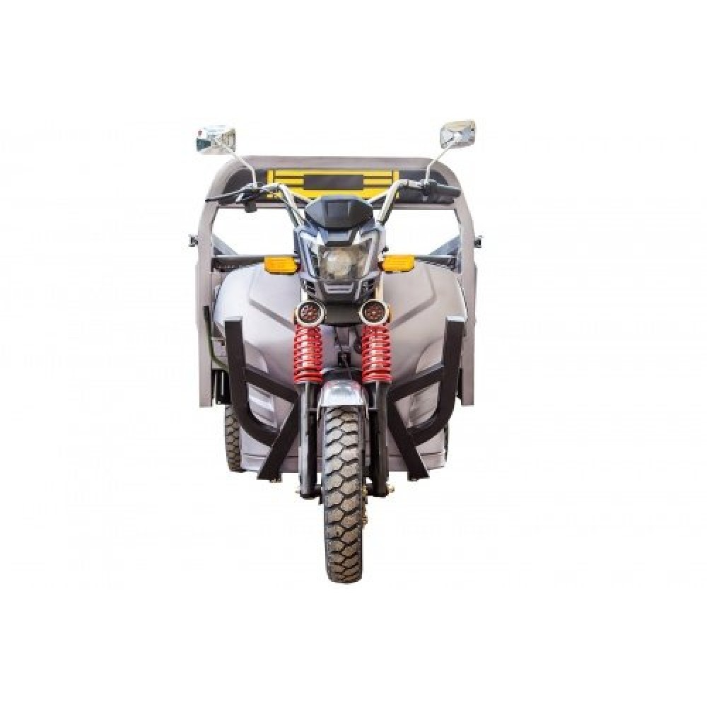 Повышенное удобство и комфорт являются приоритетными для производителя. Фирменная тормозная система представлена надежными передними и задними тормозами барабанного типа. Конструкция прочная, имеет усиленную раму для большей грузоподъемности до 1000 кг. Электротрицикл имеет резиновые накладки на руле для лучшего размещения и езды без дискомфорта. Модель оснащена брендовым двигателем мощностью 1000 Вт. Улучшенные показатели позволяют развивать максимальную скорость до 25 км/час. Емкий аккумулятор позволяет преодолевать расстояние на одном заряде 80 км. Преимущества транспортного поколения несомненно оценят старшее поколение.