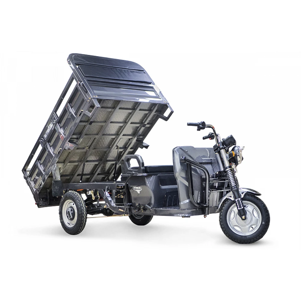 Грузовой электротрицикл Rutrike D4 NEXT II 60V 1500W новинка от компании rutrike. Трицикл d4 next массой 240 кг рассчитан на грузоподъемность до 1200 кг. Электротрицикл rutrike оснащен вместительным кузовом, модель идеально подходит для фермеров и предприимчивых людей. Новый rutrike d4 next предназначен для грузовых перевозок, считается одной из надежных и удобных моделей в своем сегменте. Трицикл rutrike может использоваться при любых погодных условиях. Купить грузовой электротрицикл Rutrike D4 NEXT II 60V 1500W и комплект аккумуляторов по выгодной цене можно на нашем официальном сайте интернет-магазина. Современные трициклы rutrike d4 next оборудованы мощным электродвижком на 1500 Вт. Технические характеристики грузовых трициклов позволяют разогнаться до 25 км/час. Заряда батареи электрических грузовых моделей достаточно на 80 км пути. Трицикл оснащен зеркалами заднего вида, информационным дисплеем и вместительным кузовом. Модель отличается большой вместительностью и отличными параметрами комфорта. Электротрицикл d4 1800 дополнительно оснащен надежной платформой для ног и комфортным пассажирским сиденьем. Грузовой электротрицикл next 1800 оснащен всем необходимым, управляется просто, не требует особого обучения. Линейки rutrike считаются лучшими среди грузовых моделей.