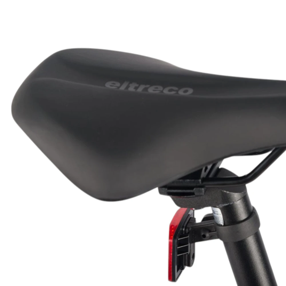 Ещё одна новинка этого года от компании Eltreco – двухподвесный электровелосипед  Walter. Новинка имеет актуальные 27,5-дюймовые колёса, которые позволяют с лёгкостью передвигаться по различным поверхностям, удобно преодолевать неровности рельефа и при этом дают велогибриду максимальную манёвренность. Прочная алюминиевая рама имеет в своей конструкции дополнительный амортизатор для усиления мягкости движения и интегрированную съёмную батарею. Также на велосипеде установлена амортизационная вилка с блокировкой хода для подбора наиболее удобного режима при поездке по разным рельефам. Велогибрид Walter имеет простую, но качественную 7-скоростную трансмиссию и практичные дисковые механические тормоза.