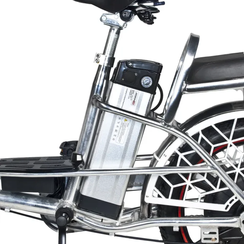 Представляем электровелосипед Jetson Pro Max Ultra Plus (60V21Ah), воплощение современного комфорта и надежности. Его стильный корпус привлекает внимание и подчеркивает индивидуальность владельца. Формат "колхозник" с большой платформой для ног обеспечивает удобство и стабильность при езде. Задний гидравлический дисковый тормоз и барабанный впереди гарантируют безопасное торможение. Мощный 500W двигатель в сочетании с литым дисками и амортизацией спереди и сзади создает плавный ход. Съемный аккумулятор на 21 Ah за сиденьем обеспечивает запас хода до 70 км в режиме ассистента. Диаметр колес 18 дюймов, а удобное больше сиденье и возможность перевозки второго пассажира делают поездки комфортными для всех участников.