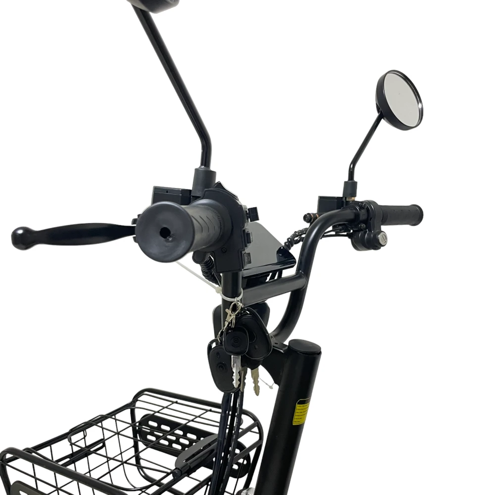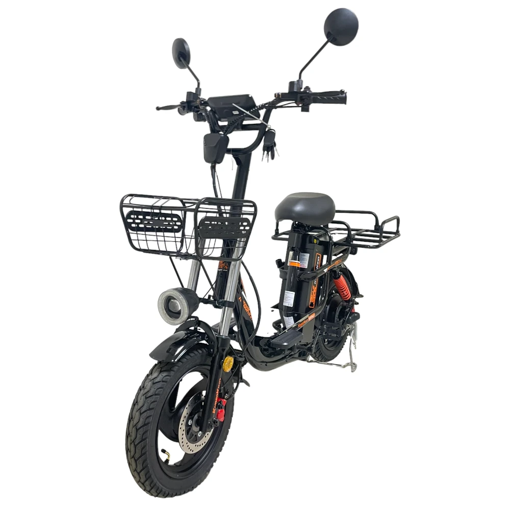 Багажник, корзина и подножка — удобно для работы, доставки и повседневных поездок.