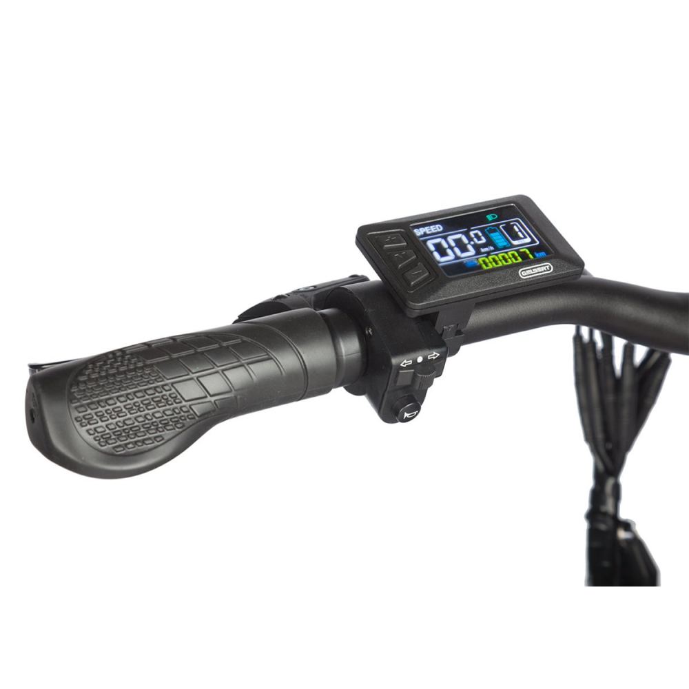 Электровелосипед поддерживает 5 режимов езды — от экономичного до спортивного, что позволяет подстроиться под стиль движения и условия дороги. Управление осуществляется при помощи ручки газа и встроенного бортового компьютера с дисплеем, который отображает скорость, заряд аккумулятора и выбранный режим.