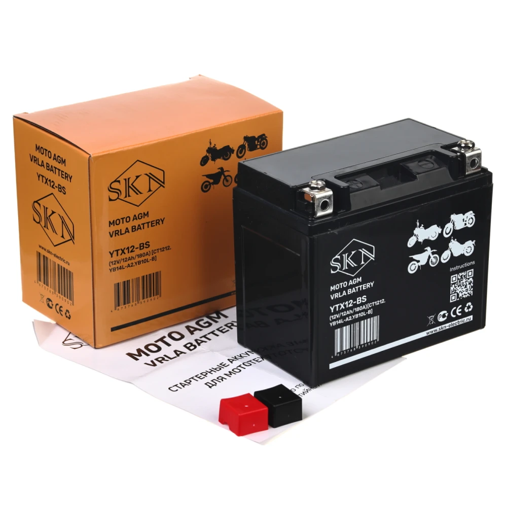 Аккумулятор стартерный для мототехники SKN YTX12-BS (12V/12Ah/180A) [CT 1212, YB14L-A2, YB10L-B]